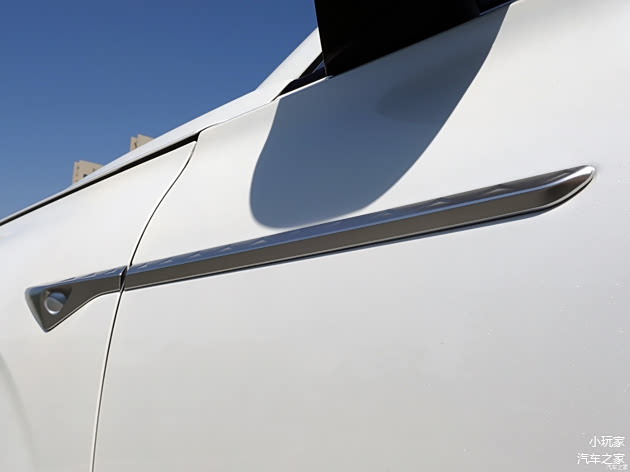 虽然不是纯电车,不需要对风阻系数斤斤计较,但荣威D5X DMH依旧采用了隐藏式门把手,很好地提升了视觉质感,而且前门和翼子板的连接处,有类似箭矢状的装饰,进一步拉长视觉感受。