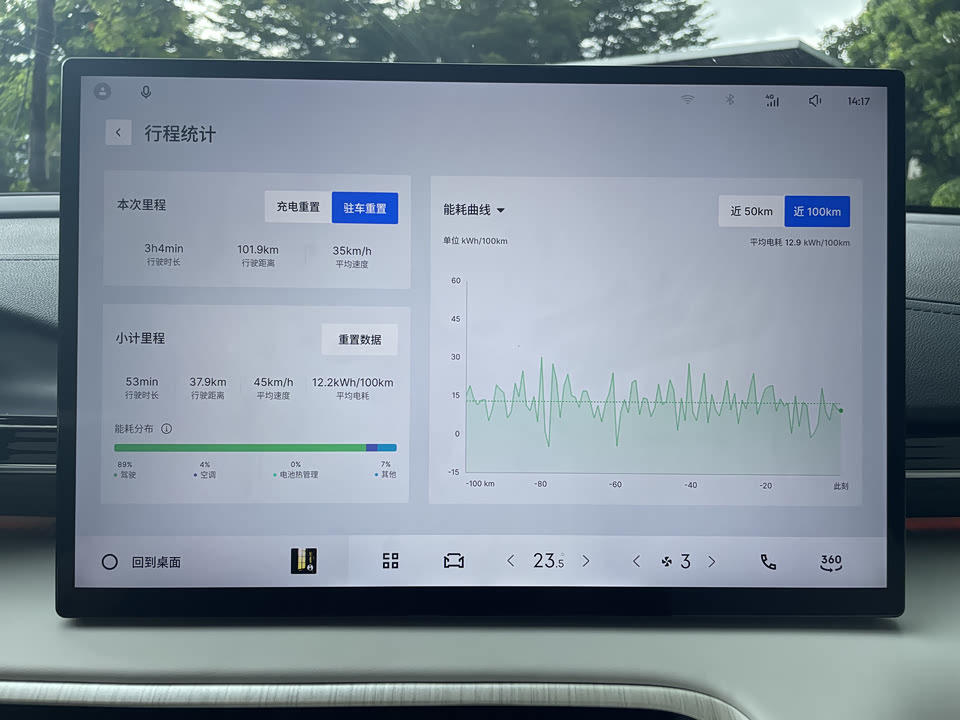 吉利银河E5能耗实测,最终电耗12.2kWh/100Km。 车型:530Km版本 人数:3人 路况:高速20公里左右(平均80Km/h以上),城区18公里左右。