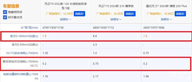 车辆性能方面,从动力参数来看,风云T10要优于风云T9,但在加速性和燃油经济型方面,却是风云T9和星纪元ET更有优势,且后者还是一款增程式车型,这就让风云T10的定位略显尴尬。星途的品牌定位要高于奇瑞,而星纪元ET的价格却与风云T10相同且加速性和燃油经济性更优。如果是注重性价比的消费者,小不了多少但价格便宜很多且油耗更低是风云T9是更好选择。站在消费者购车的角度来看,风云T10其实有些尴尬,这种尴尬来源于它的燃油经济性和定价。