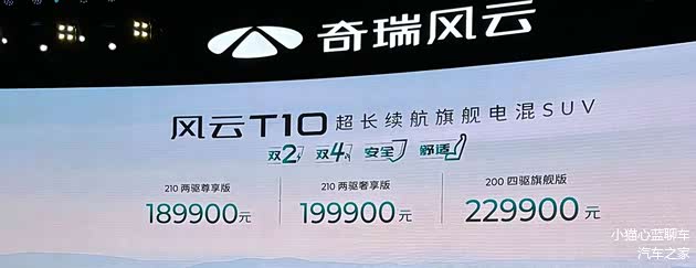 从近期的销量走势来看,奇瑞在插电混动市场的销量有了明显提升, 风云T9的6月终端销量已经攀升至5111辆,这与其价格门槛低至12.99万元有直接关系。随着风云T9的登场,瑞虎8、瑞虎7系列的插电混动车型,也将逐步退市,因为它们的市场已经被风云T9所取代。为了进一步丰富产品线,奇瑞在7月25日推出了全新车型风云T10,它可以理解为瑞虎9的插电混动版。价格方面,风云T10达到18.99-22.99万元,相比风云T9的12.99-16.99万元有了明显提升。对于一款经济型车而言,价格门槛提高6万元,会对销量带来较大的负面影响。