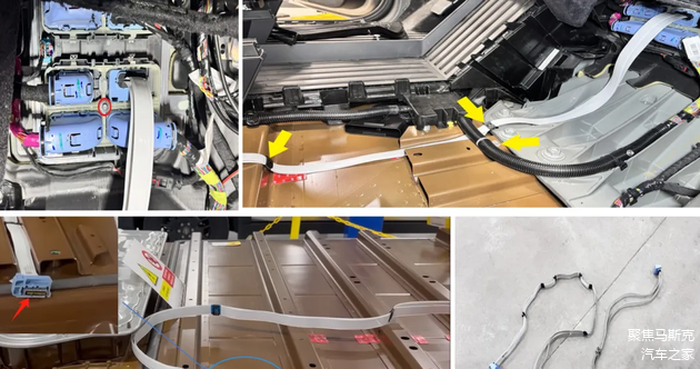 在电池包上部还有一个特斯拉专利的“扁线”的连接线束,从48V控制器 沿着车身底盘一路到PACK,这也是特拉斯之前的专利连接技术。