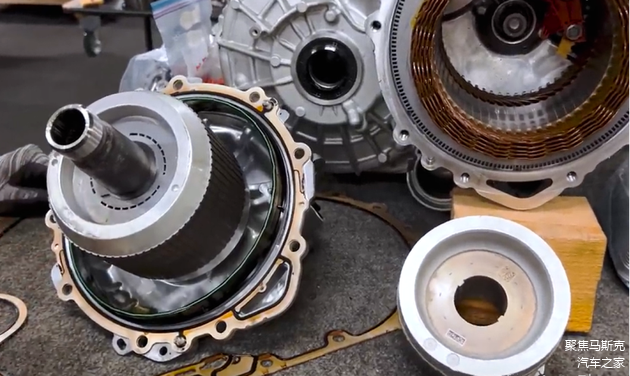 在永磁电机的转子上继续采用了斜槽设计,但是磁钢并没有像之前采用分段的。这应该还是为了降本考虑。
