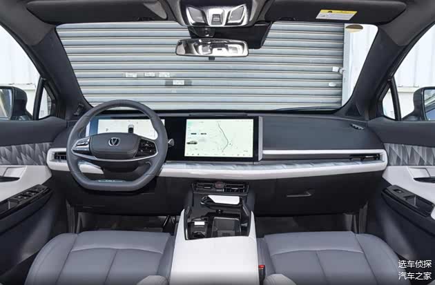 长安UNI-T属于四款车中的“老车”,发布时间较早,但在2023款上,长安对UNI-T的智能配置进行了调整,这也符合其年轻化的定位,长安采用12.3英寸液晶仪表和12.8英寸中控屏的组合,不像其他三款车为竖屏,长安采用贯穿式一体屏设计。