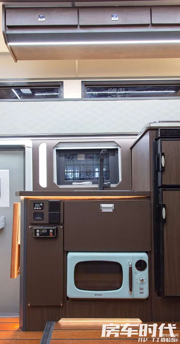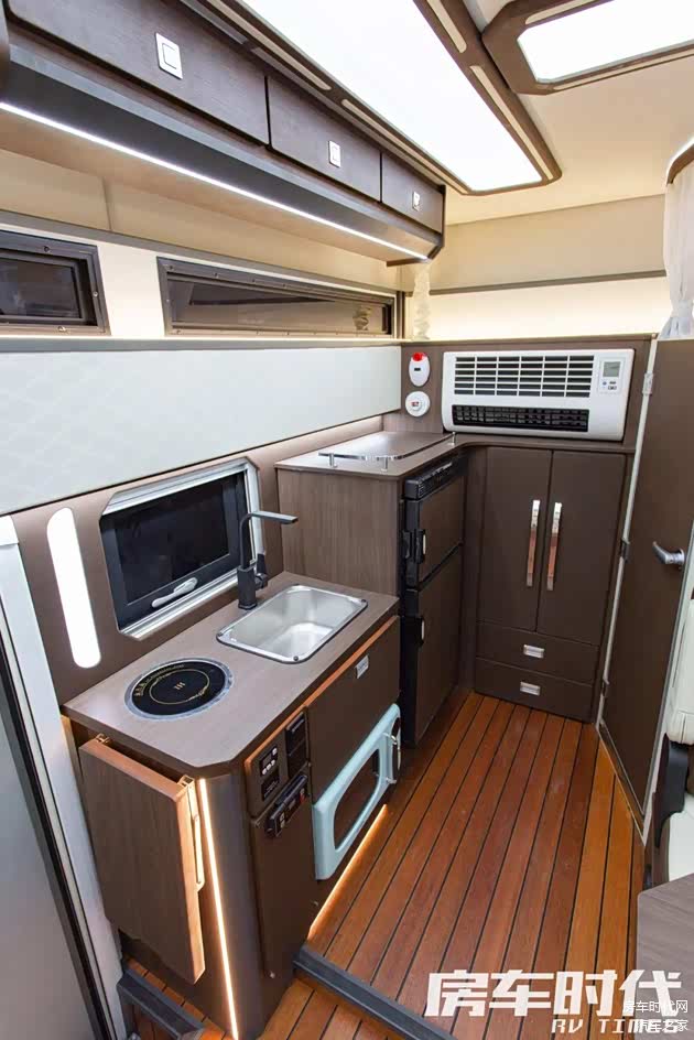 其他生活设施:底置空调、驻车燃油空气加热器、驻车燃油热水循环加热系统、投影仪、微波炉、118L冰箱等