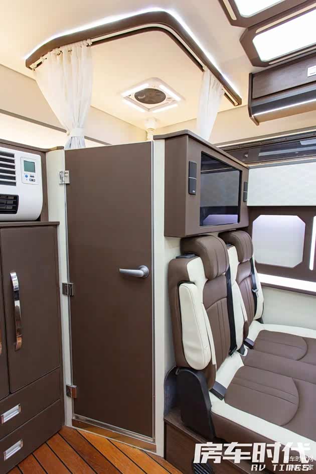车辆采用了铝合金冲压成型厢体以及套筒式硬升顶设计,整体经过了十万次升降可靠性试验,结实可靠,为用户提供了安心保障。乘客门外侧附有高端电控密码锁,智能设施让用户旅居更为便利。