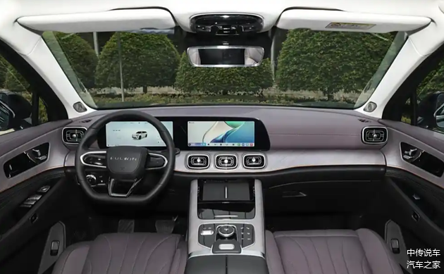 内饰部分,风云T10的双联屏中控看上去较为稳重且符合其车型定位。材质方面使用了大面积的软性材质包覆中控台,并搭配了一些木质纹理饰板装饰。提供了暮山紫和青瓷绿两种内饰配色供选择。