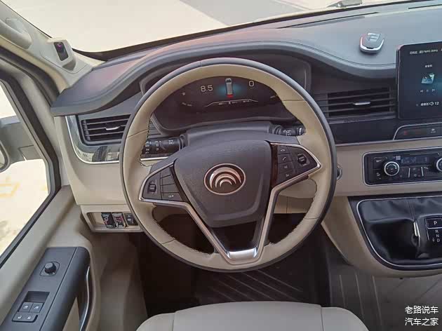 宇通天骏V5轻客的驾驶舱偏向乘用车化设计,内饰采用双拼配色,降低单调感。四幅式方向盘同样采用双拼色盘体,带有多功能按键,驾驶员可在手不离方向盘的情况下操控车辆功能。同时,方向盘两点、十点位置设计有突起,更便于握持。