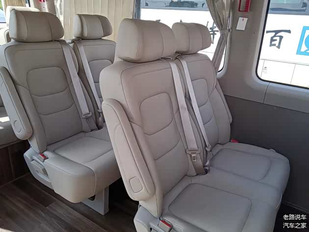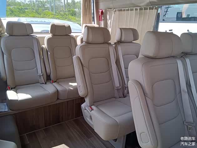 接下来让我们进入乘客区。实拍车型在乘客区内放置了7张座椅,驾驶区内2张座椅,整车核载9人,可持C证驾驶,入门门槛低,更经济便捷。