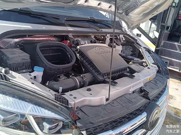 掀起前引擎盖后,宇通天骏V5的“心脏”映入眼帘。车辆采用M9T柴油发动机,排量2.3L,最大163马力,最大扭矩达400N·m。在VGT变截面涡轮等技术的加持之下,发动机的油耗得到降低,运输效率得到提升,可以有效控制车辆的运营成本。