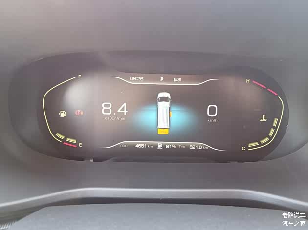 仪表盘采用组合式布局,左侧为油量表,右侧为水温表,中央区域为液晶屏幕,将转速、车速等信息展示给驾驶员,整体布局一目了然。