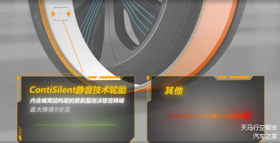 据德国马牌轮胎的数据,ContiSilent静音棉降噪技术,能有效降低最高达9分贝的轮胎噪音。