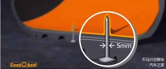 德国马牌轮胎开发了一套ContiSeal自修补技术,从而让轮胎拥有“扎钉子、不跑气”的安全性和轻度的破损续驶能力。