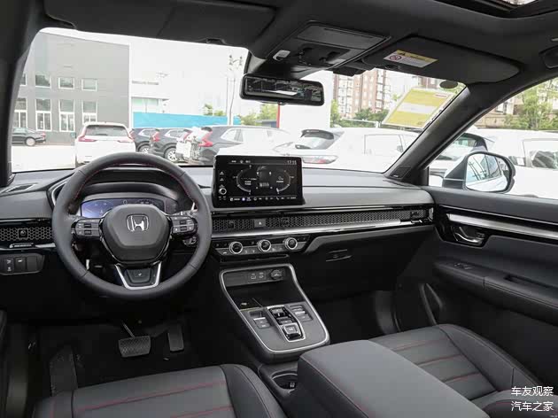 相较之下,本田CR-V的内饰配置则更为舒适豪华,尤其是沿用了全新一代思域的内饰风格,比如蜂窝网状的出风口饰板乃是亮点所在,配合悬浮式中控屏和液晶仪表,也使得整个内饰不至于那么单调。不过总体而言,两车的内饰风格趋近,和当下的新势力车型相比,均属于较为传统的类型。