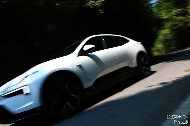 在实际的城市道路上行驶时,极星Polestar 4表现出了极高的稳定性,即使面临复杂的路况,其灵敏的加速响应足以让车主可以在城市道路游刃。在道路过弯时,对于弯道侧倾有非常好的抑制感,转向精准;对于颠簸路段,如减速带一类较大起伏的过滤性更偏于性能车的,要相较于家用车型硬一些,但对细碎颠簸的过滤表现出色;而在激烈高速驾驶中,整车的反馈感很清晰,尾部跟随性也很好,实际驾驶感受不似一款中大型车,更是如运动小车般灵活。