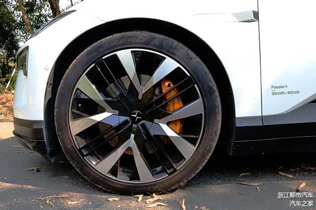 为了给整车赋予更多的运动性能,极星Polestar 4搭载的是22寸锻造车轮,以及BREMBO 4活塞刹车卡钳,同时其配备的265/40 R22的倍耐力P ZERO轮胎,在提供出色的抓地性能之外,也让宽胎与宽体车身设计更为匹配。