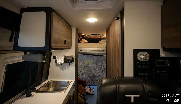 2025款TIFFIN GH1生活区内部由会客区、厨房区、独立卫浴间、尾置升降床组成,内饰风格是典型的露营风,视觉效果很舒适。