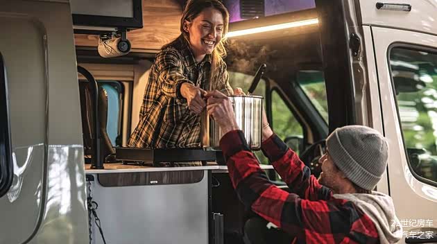 主副驾驶座椅支持向后旋转,与生活区内座椅形成完整的会客区域。厨房台面内嵌有洗手池,空闲区域完全能够当作操作台使用。厨房区外侧配备了两块拓展桌板,便于户外用户烹饪操作。
