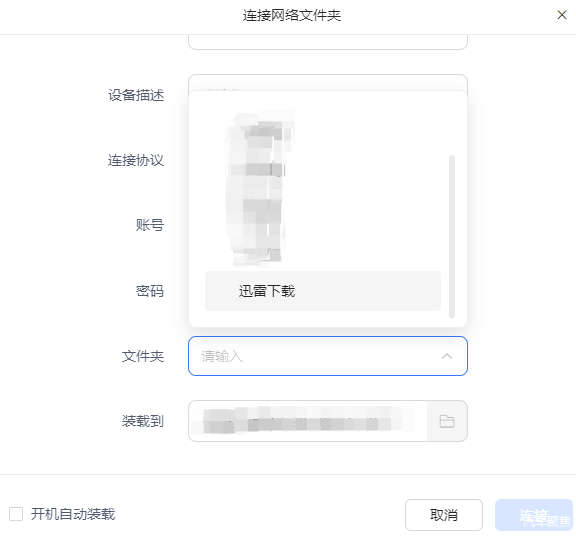 回到DXP4800,填好IP地址和账号密码,选好要挂载的文件夹路径以及装载的文件夹路径。