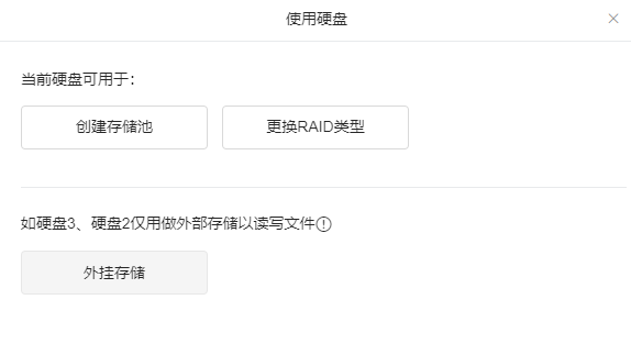 之前绿联官方的公告也有提到过,由于新旧系统的逻辑是不一样的,旧硬盘在新系统中只能作为外部存储使用。所以不要选择创建存储池或者更换RAID类型,它会提示你格式化。