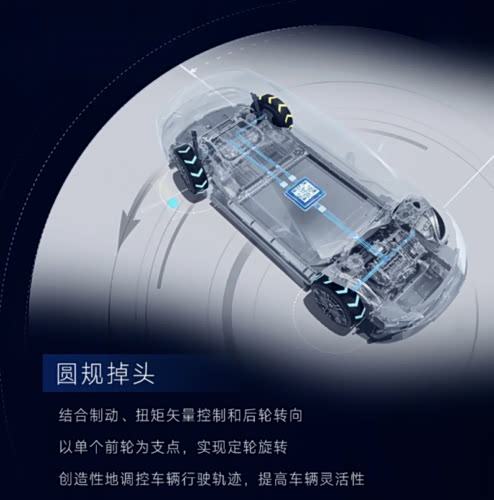 (1)圆规掉头圆规掉头,简单来讲就像是用圆规画圆一样,是通过锁死前轴的一个轮胎,对剩余的三个轮胎施加力矩从而实现360度的旋转和掉头。