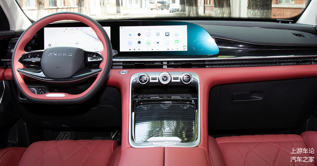 进入车内,瑶光的内饰设计简洁大方,采用了贯穿式空调出风口,并大量运用皮质包裹,提升了整体的豪华感。宽厚的座椅造型保证了乘坐的舒适性。车辆的门板和座椅上都采用了曲线菱形线条勾勒。