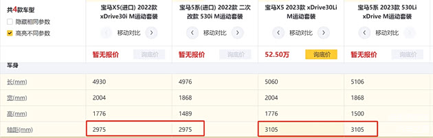 为什么说5系和X5是一个级别的?因为他们是同平台的产品,之前进口X5的轴距2975mm和上一代进口5系轴距一样,现在加长的X5轴距3105mm和加长5系也是一样。