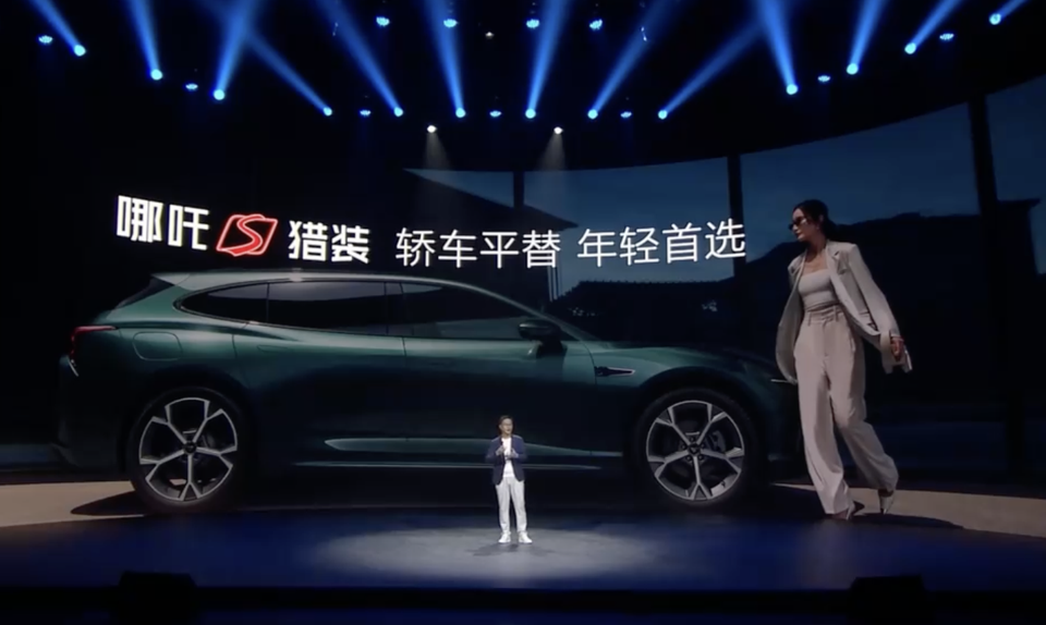 开始了,张总上台,用最近很火的游戏黑悟空,带出中国传统文化。所以,名儿咱肯定是不改了,就叫哪吒。据说后面会有黑悟空联名版 哪吒X、哪吒S、哪吒GT,到最近的哪吒L、哪吒S猎装,品牌产品规划越来越全面了。“为年轻人造好车”,作为未来的品牌定位,也是实践的又一步,它就是哪吒S猎装。 作为瓦罐脑袋,可以说蛮惊喜的,因为其实从某种程度上来说,它是兼具了轿车的驾驶感、跟SUV的装载性的。嫌SUV坐姿太高?嫌轿车尾厢小? 那为啥国内的瓦罐销量不高?,有一部分原因,就在价格上了。慢慢往下看,它会给到一个怎么样的价格。