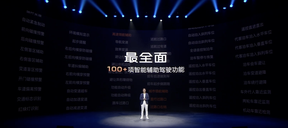 智驾方面,全车31个传感器,1颗禾赛固态激光雷达+5颗毫米波+11颗辅助驾驶摄像头+12颗超声波雷达+Orin X(算力254 TOPS),且目前端到端已经上车。入门车型是地平线征程3芯片,且支持L2的智驾能力;