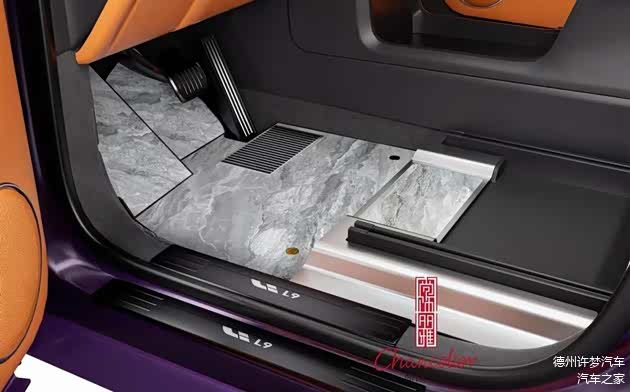 通用地板改装往往难以完美贴合原车,但尚饰丽雅的主副驾铝合金护角的独创设计最大程度地遮挡外露的绒毯,既美观又实用。针对SUV设计,采用了独创碳纤维护角,实现了全覆盖,为整车细节处理加分。