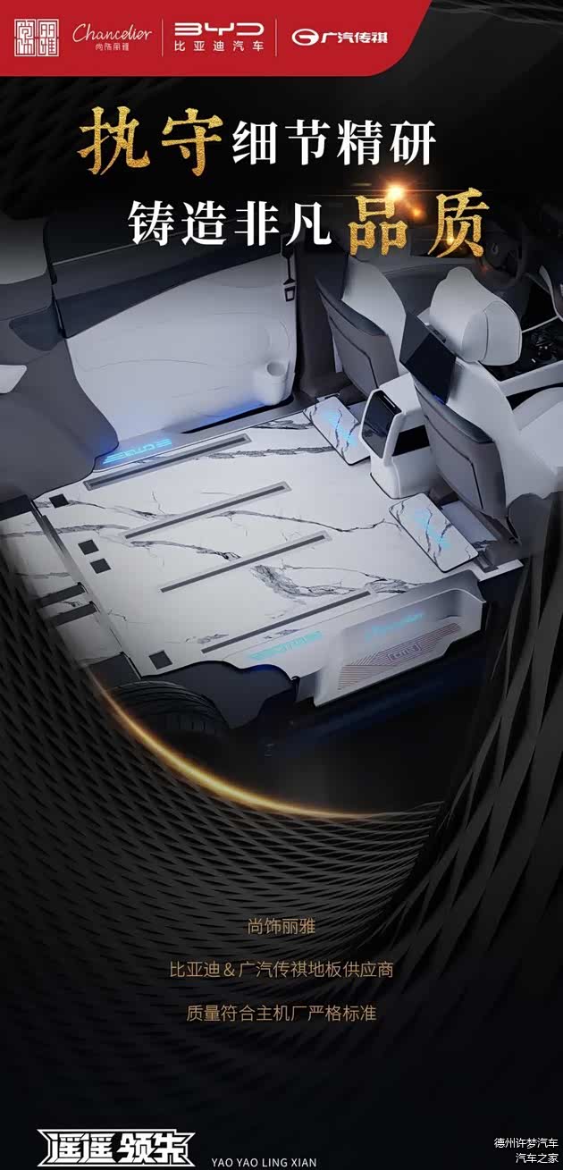理想L9地板套件因其纯粹而高级的设计而脱颖而出,没有过多张扬的鲜艳色彩,也没有舒适感的妥协。代表着专注和轻装上阵的生活态度。尚饰丽雅更是比亚迪和广汽传祺的地板供应商,权威认证,品质保障。
