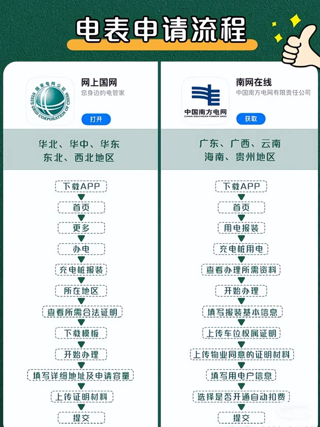 (三)下载电网 app 并申请根据所在地区选择相应电网 app,注册并提交资料,优先申请三相电表,若不行则考虑 220v 电表。