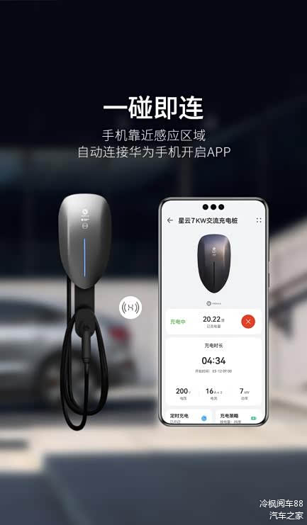 鸿蒙智联:与鸿蒙系统对接,支持华为手机 NFC 功能,可双 APP 操控,远程控制、预约充电等便捷高效。