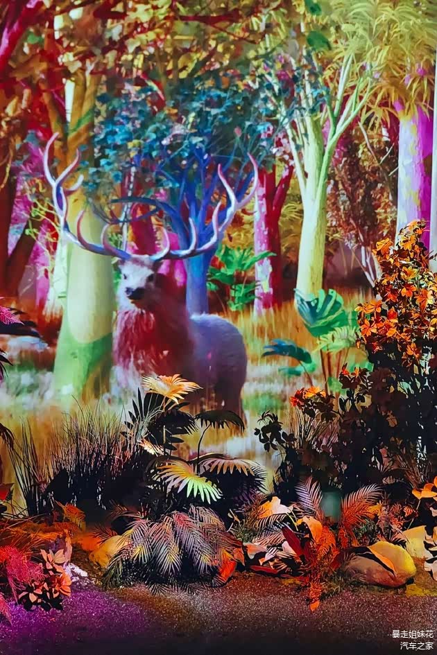 展览的创新同时也在于不同主题空间内配有与主题相应的独特香薰气味。在主题为“Volcanic 火山”的空间里,花花不仅被沸腾的火山、熔岩、火花、浓雾画面所震撼,还为鼻息间隐约而至的炙热、微焦气味而燃起热情。在“Colorful Forest 光和彩色森林”主题空间里,七彩缤纷的深林和灵动的动物也与清新的香薰特别适配,花花结束游玩后就直接购买同款啦~