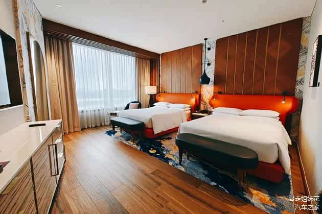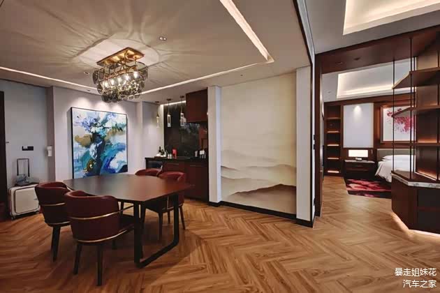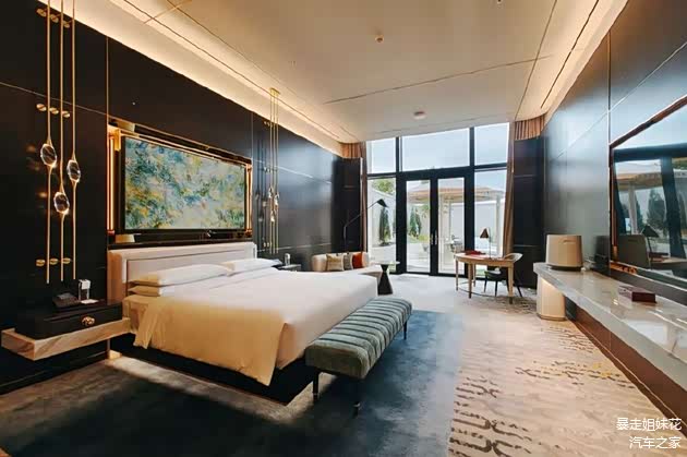 在辉映楼内仿佛能沐浴在炙热的阳光中,客房内不同色调的石材和木材巧妙地融于一体,加上定制的艺术品,打造出充满力量感及色彩丰富的视觉效果。而且房间mini bar选放了优质的著名产区葡萄酒,花花表示很满意,哈哈~~