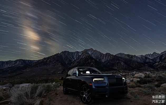 6月21日夏至日,劳斯莱斯展示一组在北加州以劳斯莱斯库里南BlackBadge车型为核心的令人惊叹的夜景照片,顺带介绍了品牌经典的星空顶工艺。