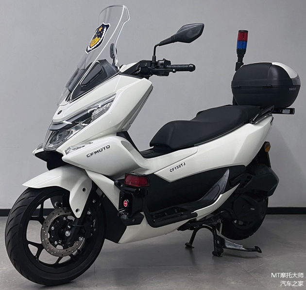 第二款是春风150SC,虽然这款车刚上市不久,但其发动机可以说是“老发动机”,也就是隆鑫的发动机,型号1P57MJ,国内多家车企都有采用,质量表现非常稳定,这里就不过多表述了。而本次登陆工信部主要是警用版本发布,车头风挡加装了警徽,尾部加装警示灯,其它版本与市售版本无异。