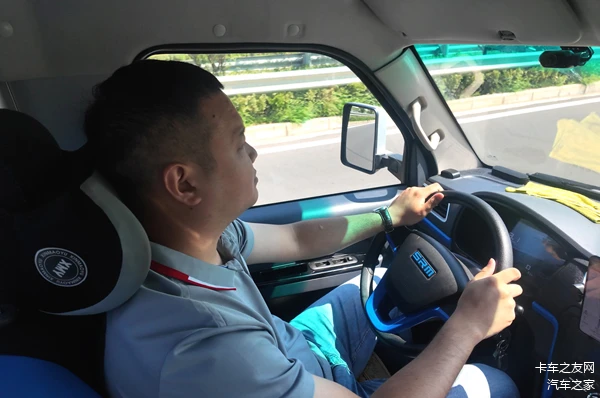 宽敞的驾驶室让蒋壮明的头顶与车顶之间留有充裕空间,双腿也能得到充分伸展
