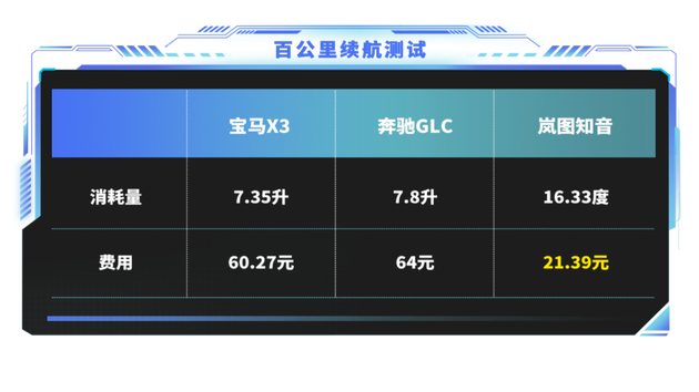在测试时,统一空调设置与路线,看看三台车行驶百公里需要花费多少。