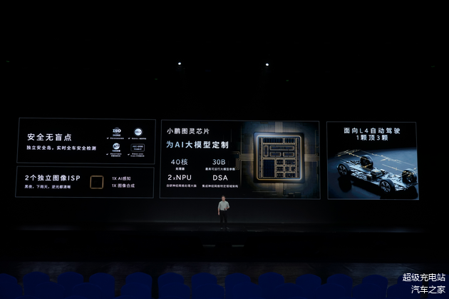 这里面最重磅的,当然还是刚刚在8月23日流片成功的「全球首颗可同时应用在机器人、AI 汽车、飞行汽车的芯片」——「小鹏图灵」,这是一颗「端到端大模型定制芯片」,拥有「2个自研的神经网络处理大脑(NPU)、2个独立图像信号处理器(ISP)」,以及「40核处理器」,可用于最高 L4 级别的自动驾驶,「一颗顶三颗」。