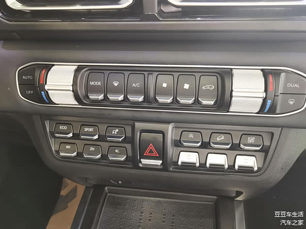 中控台采用了钢琴式的按键设计,所有的功能一目了然。我个人很喜欢这种点阵式的排列布局