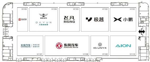 十一号馆,参展品牌:远航汽车、飞凡、极越、小鹏、长安汽车、东风汽车、埃安AION
