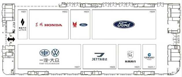 六号馆,参展品牌:睿蓝汽车、东风本田、福特、一汽大众、捷达、东风风行