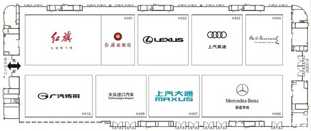 三号馆,参展品牌:红旗、雷克萨斯、上汽奥迪、广汽传祺、福建奔驰、上汽大通