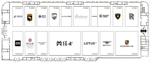 十六号馆,参展品牌:保时捷、猛士、劳斯莱斯、宾利、兰博基尼