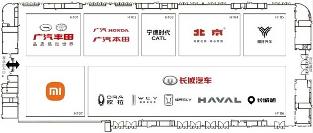 一号馆,参展品牌:广汽丰田、广汽本田、北京汽车、哪吒汽车、小米汽车、长城汽车