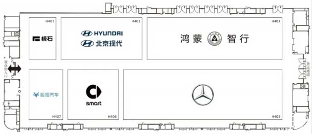 四号馆,参展品牌:极石汽车、北京现代、鸿蒙智行、极狐汽车、smart、奔驰