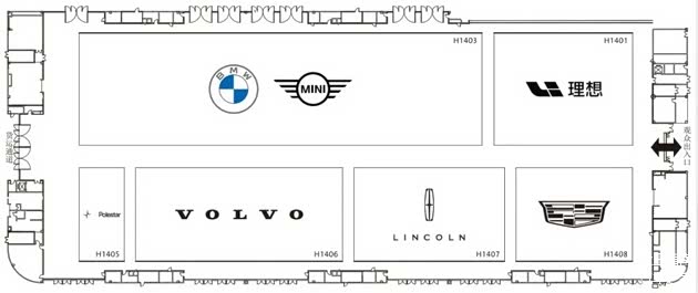 十四号馆,参展品牌:宝马、理想、沃尔沃、极星、林肯、凯迪拉克
