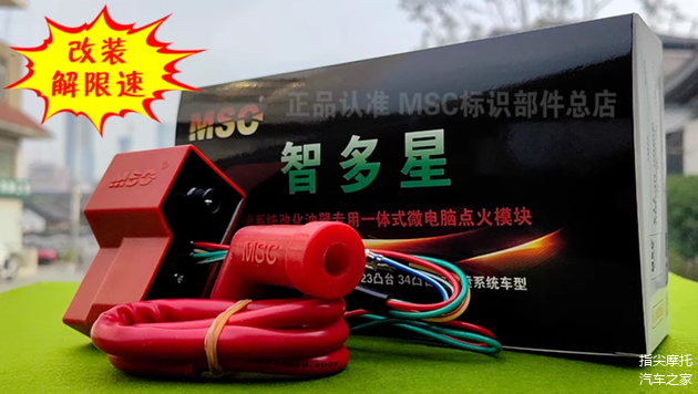 符合这个要求的,刚好是MSC智多星,而且它是高压一体包,连接极其简单。直接上智多星,红线接受钥匙控制的电源正极,比如锁后电源,闪光器电源等。为了测试方便,先直接接到电瓶正极上,绿线给他搭铁,两根触发线接到触发器两根出线上。