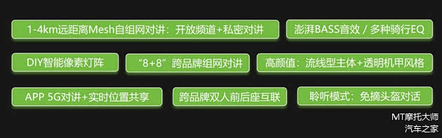 从极蜂Q已公布的信息来看,跨品牌多人无法互联的问题已经得到了解决!记得之前有车友吐槽外出骑行,单人带俩头盔、带耳机,为的就是互联、沟通(当然,不排除有撩妹嫌疑)。而极蜂Q设备支持1-4km远距离Mesh自组网对讲(不同品牌耳机融合,兼容大多数蓝牙耳机头盔耳机、TWS、常规耳机等),同时可以设计开放频道(多人组队骑行,8+8最高16人跨品牌聊天)和私密对讲(前/后座悄悄话);相信仅这一项就能吸引不少车友,外出游玩,妈妈再也不用担心我不同品牌“连不上”了!