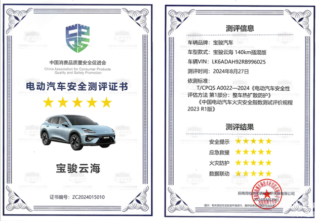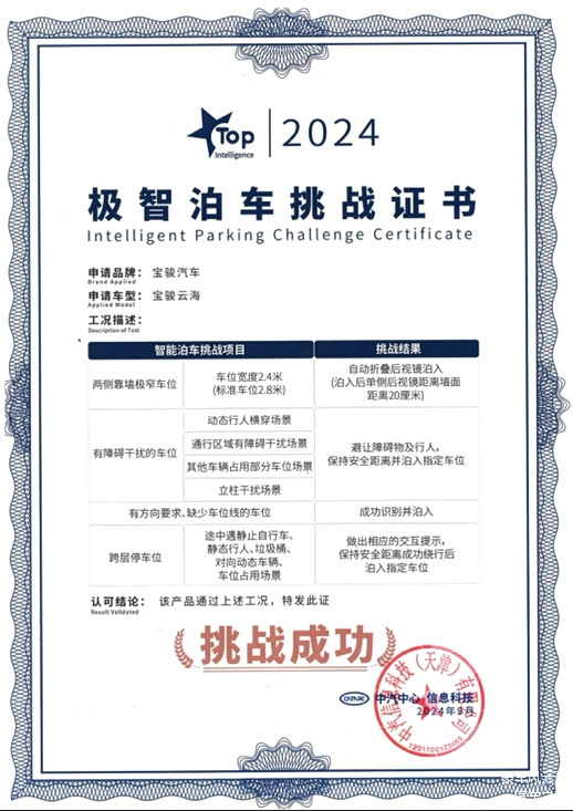 在现代汽车工业的发展浪潮中,智能化与安全性已成为衡量一款车型是否卓越的关键因素。宝骏云海作为宝骏品牌下的首款智能长续航SUV,在行业内独树一帜,以其出众的性能和科技感受到了市场的广泛关注。近日,在经过严格的测试与评审后,宝骏云海荣获了“中国电动汽车安全测评”的五星认证和在中汽中心|信息科技“Top Intelligence极智泊车挑战”中的权威认证,从而充分展现了此款车型在安全性能和智能科技方面的强劲实力。